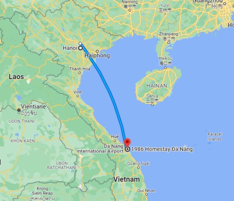 Từ Hà Nội, quý khách có thể mua vé máy bay tại Cảng hàng không quốc tế Nội Bài đến sân bay Đà Nẵng với mức giá khá ổn. Sau thời gian di chuyển khoảng 1 giờ 10 phút bằng đường hàng không, từ sân bay, quý khách có thể thuê ô tô taxi để di chuyển tới vị trí của homestay với quãng đường 6km trong vòng khoảng 13 phút.