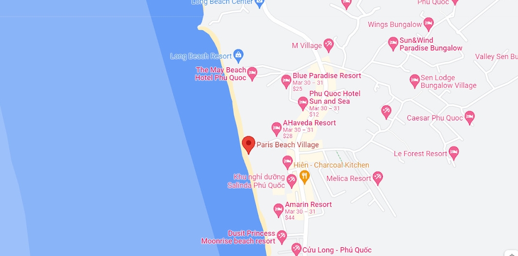 Paris Beach Village là khu du lịch nghỉ dưỡng nằm ngay bên bờ biển xinh đẹp của Đảo Ngọc. Với vị trí thiên thời địa lợi và vô cùng lý tưởng nơi đây đã đón một lượng khách du lịch vô cùng lớn ghé thăm resort hàng năm. Resort cách sân bay Phú Quốc chỉ 4km tức là khoảng 10 phút lái xe nên du khách sẽ đến resort một cách nhanh chóng và không cảm thấy quá mệt mỏi sau một chặng bay dài.