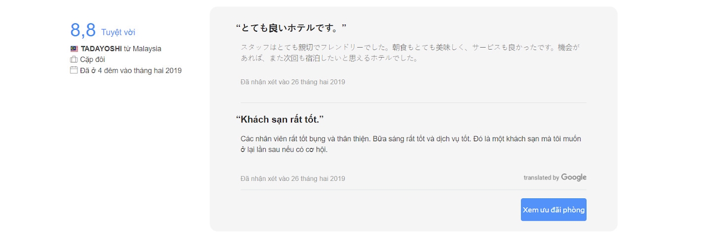 - Người dùng Yoonah đến từ Hàn Quốc nhận xét rằng: “Bãi biển đẹp, nhân viên tốt, đồ uống ngon! Và chúng tôi thực sự thích thị trấn nghỉ mát paris. Tôi thực sự quyết định quay lại Phú Quốc một lần nữa. Đó là một chuyến đi thực sự tốt đẹp. Thanks.”
