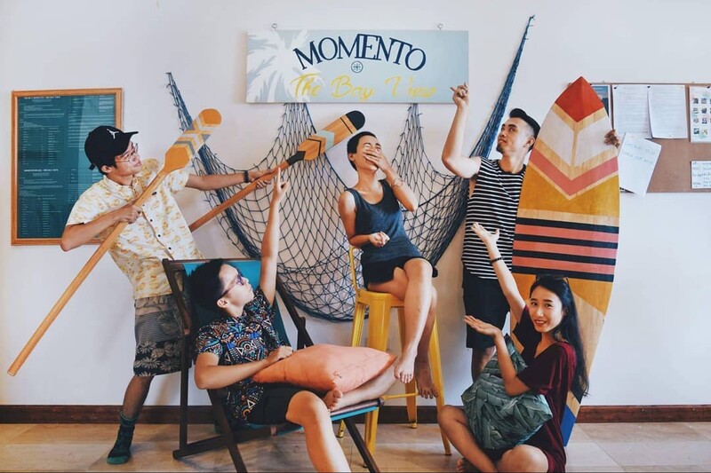 Với phòng sinh hoạt chung, Momento Homestay trang bị cho quý khách một bàn gỗ cỡ lớn và nhiều ghế ngồi với gối tựa vô cùng thoải mái. Đây sẽ là không gian mà mọi người có thể cùng nhau nói chuyện, ăn uống và chơi đùa cùng nhau. Bên cạnh đó, chúng tôi cũng trang trí một góc sống ảo nho nhỏ với biển hiệu homestay, lưới đánh cá và ván gỗ để du khách có thể cùng nhau tạo dáng check-in vô cùng vui vẻ.