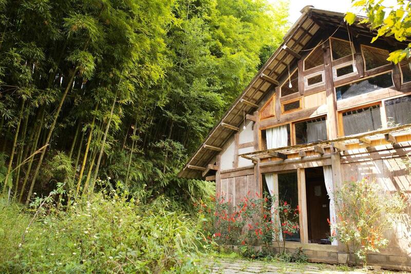 Căn nhà có 4 phòng ngủ, bao gồm : 2 phòng tầng trệt có cửa kính nhìn ra khu rừng tre xanh mát và 2 phòng áp mái với view khu vườn và rừng tre. Căn nhà cũng có khu bếp nấu nướng riêng dành cho du khách.