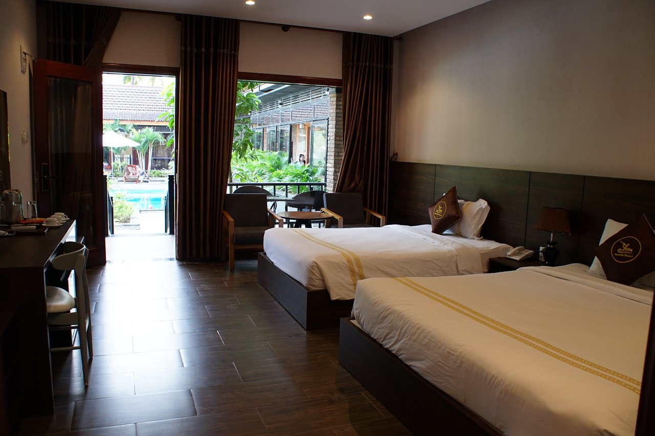 Nhân viên trực 24 giờ sẽ luôn hỗ trợ du khách trong mọi tình huống. Điều đặc biệt là tất cả các phòng ở đây đều có view hướng ra bể bơi ngoài trời. Thật tuyệt!