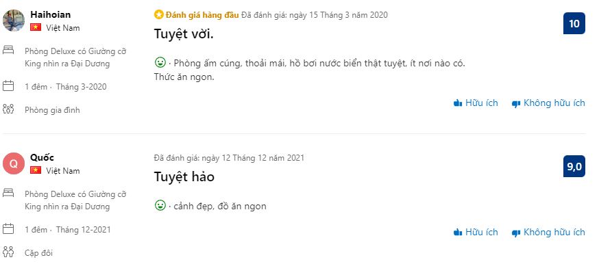 Với tất cả những vẻ đẹp và chất lượng đã được kể trên, Amiana Resort vô cùng xứng đáng khi nhận được hàng loạt những đánh giá tốt cùng sự hài lòng của du khách. Bạn đọc có thể tham khảo những đánh giá dưới đây để cảm nhận được những cảm giác và trải nghiệm mà Resort Amiana Nha Trang mang lại cho du khách.