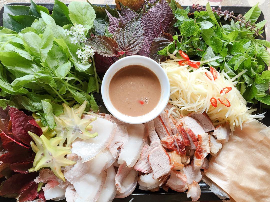 Ăn gì ở Đà Nẵng? Bánh tráng cuốn thịt heo là món đặc sản rất thu hút nhiều khách du lịch và cả người dân địa phương ở Đà Nẵng. Bánh tráng cuốn thịt heo là sự kết hợp hoàn hảo giữa nhiều hương vị: Ăn thịt luộc với bánh tráng cùng các loại rau ăn kèm. Mắm nêm tự làm phù hợp với khẩu vị của rất nhiều người.