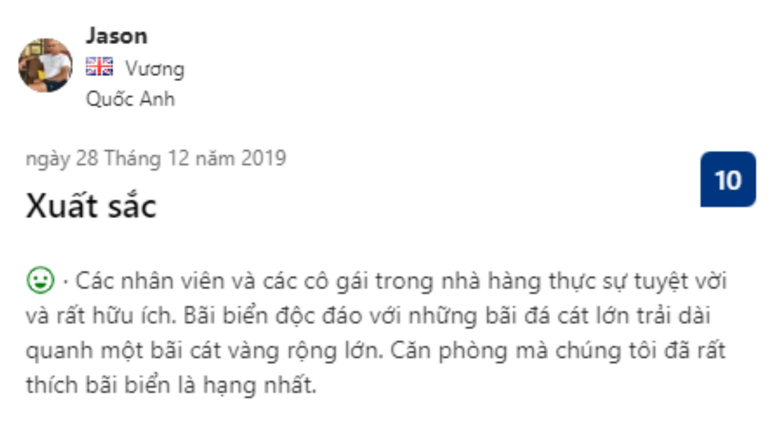 Anh Jason một du khách tới từ Anh Quốc sau khi nghỉ dưỡng tại Quy Nhơn đã rất hài lòng chia sẻ: