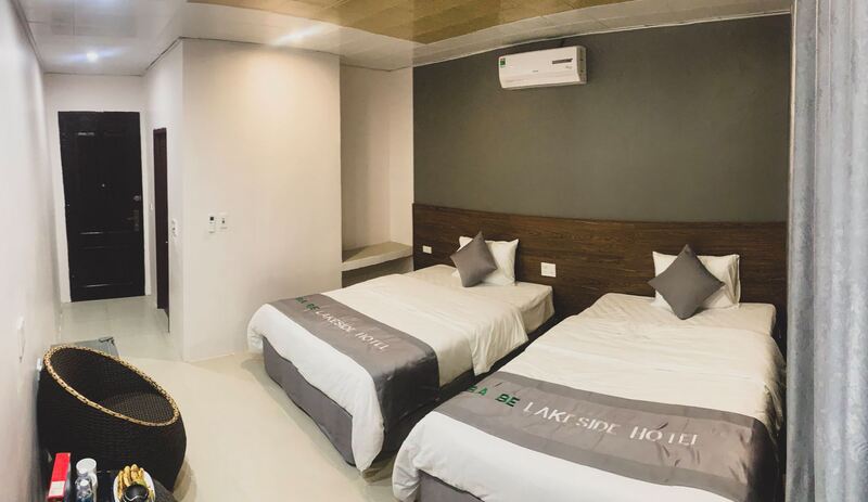 Căn phòng rộng 29m2 được đặt 2 chiếc giường ngủ cho 3 người lớn hoặc 2 người lớn và 2 trẻ em dưới 12 tuổi, thích hợp với một gia đình hay một nhóm bạn. Tông màu chủ đạo là sự kết hợp của màu trắng và màu xám tạo cho căn phòng nét tinh tế và thanh lịch. Có cửa lớn dẫn ra ban công với view hồ nước, tại đây bạn có thể ngồi đọc sách, nghe nhạc và tận hưởng bầu không khí trong lành, mang lại cảm giác thư thái và sảng khoái.