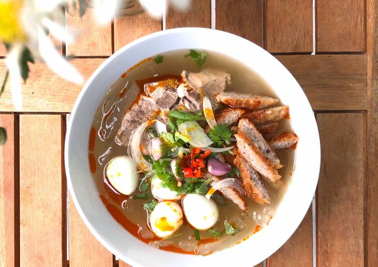 Một điều đặc biệt nữa là quán cho bột gạo vào nấu chung với nước dùng nhìn giống như cháo và khách cũng phải đợi khá lâu để có thể thưởng thức.