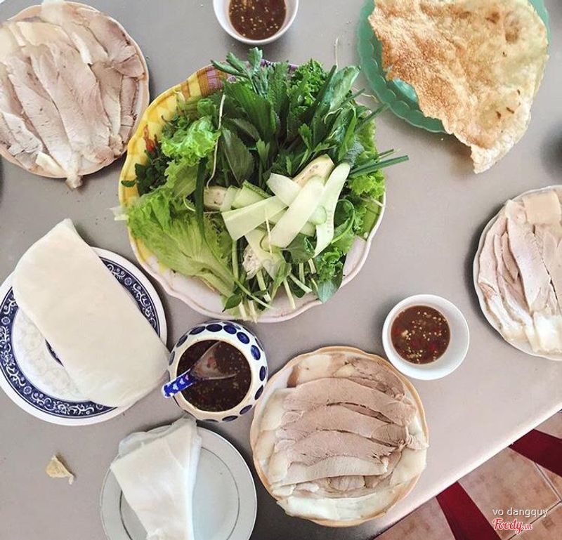 Điều làm lên đặc biệt của quán chính là rau sống ăn kèm đều được tự trồng bằng phương pháp thủy canh đảm bảo an toàn nhất cho du khách. Thịt heo được thái lát mỏng với 2 lớp đầu da rất lạ mắt.