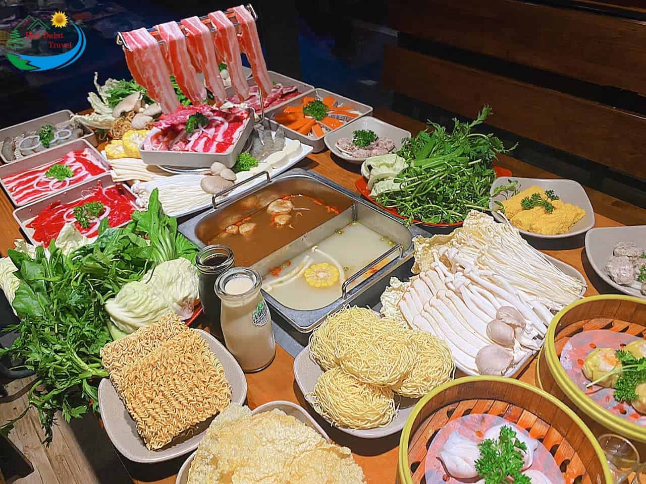 Điểm quan trọng đó là quá nhiều loại rau tươi được rửa, sơ chế sạch sẽ sẵn sàng phục vụ cho du khách. Thực đơn với nhiều loại thịt, hải sản nhúng lẩu rất đa dạng và phong phú thoải mái cho bạn lựa chọn.