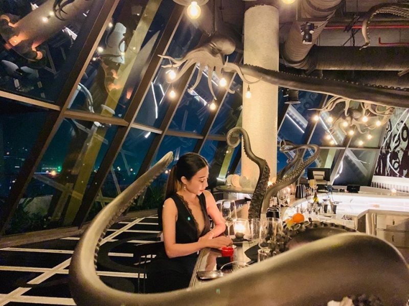 Phía trong quán hiện lên là một không gian huyền bí và ảo diệu với thiết kế những chiếc xúc tu lớn của con bạch tuộc đan xen nhau cùng sắc đen của toàn bộ sàn. Quán tạo thêm dấu ấn với khách hàng qua những món đồ uống được pha chế từ những đặc sản địa phương đó là rượu sim, mật ong rừng hay thậm chí cả tiêu Phú Quốc. INK 360 Phú Quốc còn được biết đến là quán bar tọa lạc trên tầng thượng cao nhất trong thành phố với tầm nhìn toàn cảnh biển xanh cũng như đất trời của hòn đảo ngọc.