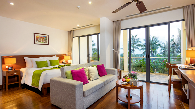 Cảm giác đầu tiên khi bước vào phòng chắc hẳn sẽ là thư giãn, ấm cúng và thoải mái. Bởi căn phòng này có ban công phóng tầm nhìn ra biển và vườn. Diện tích căn phòng là 35m2, phòng được bố trí 02 giường đơn hoặc 01 giường đôi cùng với tất cả những đồ dùng cần thiết cho chuyến du lịch của bạn.