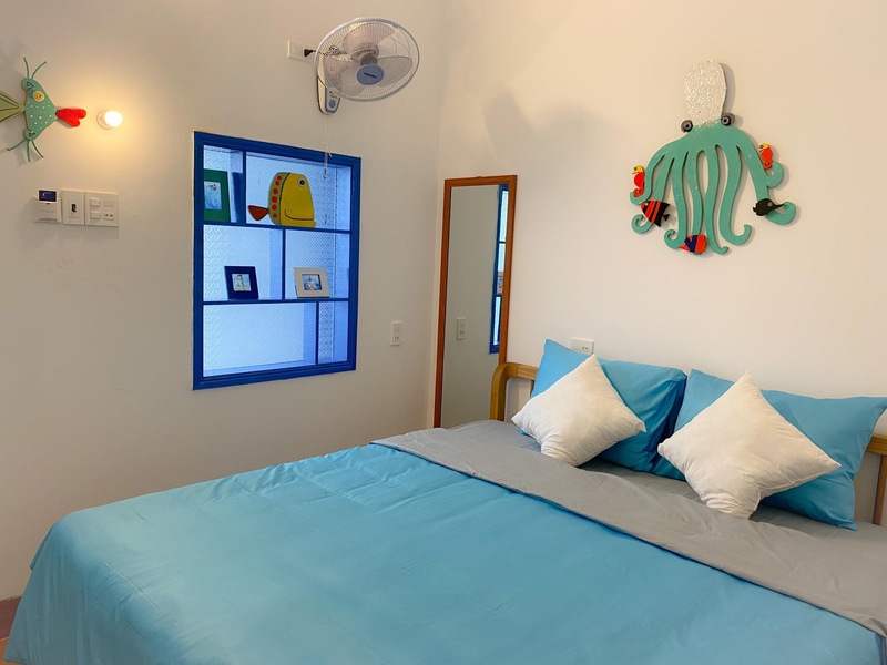 Đây cũng là một trong những phòng đắt khách của nhà Cát Homestay Quy Nhơn. Điểm thu hút của Cua Biển Room chính là tầm nhìn hướng ra biển. Điều này sẽ làm cho căn phòng càng trở nên thoáng mát hơn và du khách cũng sẽ tận hưởng trọn vẹn không khí của biển. Người nghỉ dưỡng có thể ngắm hoàng hôn và bình minh bất cứ thời điểm nào ngay cả khi ở trong homestay. Với diện tích 20m2, homestay đã trạng bị một chiếc giường đôi cỡ lớn để quý khách thoải mái say giấc. Phòng sẽ là sự lựa chọn hoàn hảo cho chuyến hành trình của 2 người hoặc 1 cặp vợ chồng có thêm con nhỏ.