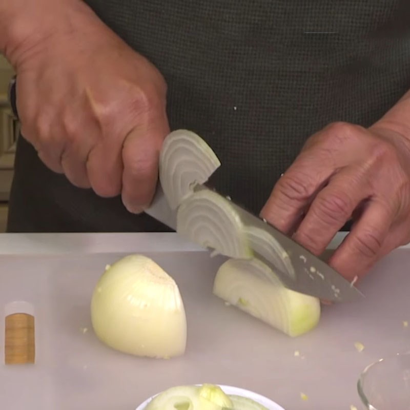 Đối với phần hành tây bạn sơ chế sạch chúng và thái chúng thành các múi cau. Gừng bạn cần đem chúng đi cạo vỏ rồi cắt chúng thành sợi.