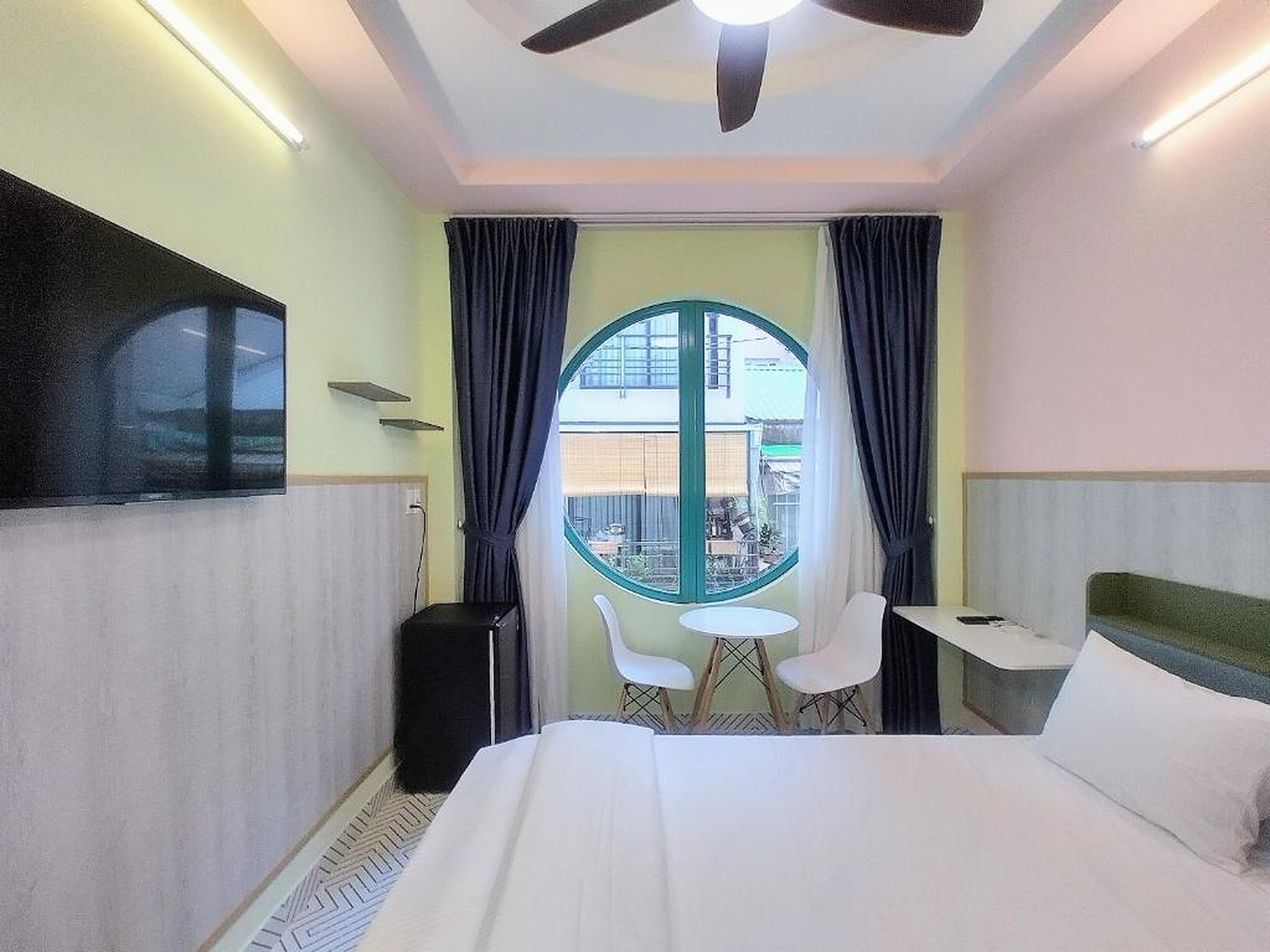 Căn phòng phù hợp với những bạn nữ thích tìm một không gian nghỉ ngơi xinh xắn và đáng yêu. Tại Cozrum Homes Delightful Corner Ho Chi Minh City mang đến cho bạn một căn phòng nghỉ tuyệt vời với gam màu hồng ngọt ngào và nữ tính. Cửa sổ được thiết kế hình tròn độc đáo giúp bạn có thể tha hồ ngắm nhìn khung cảnh về đêm của thành phố Sài Gòn đầy nhộn nhịp.