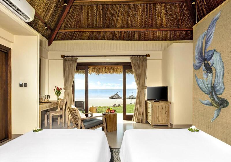 Nép mình ngay bên cạnh bãi biển riêng trải dài với bờ cát trắng phau, không gian yên tĩnh và thơ mộng tại đây có thể chinh phục bất kể ai, dù là du khách kĩ tính nhất.