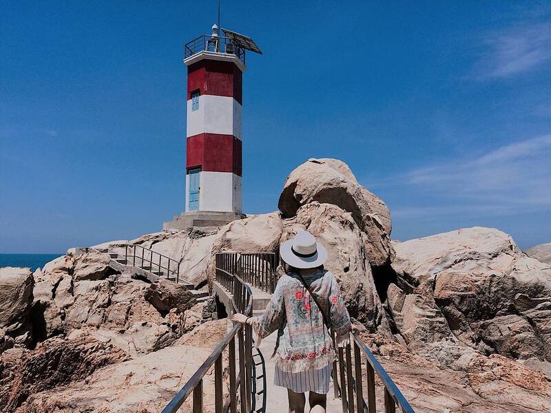 Cách Da Dia Reef Homestay km, du khách có thể chìm đắm trong không gian đầy hoang sơ và lãng mạn và độc đáo với các lớp đá đen nâu pha hồng đậm chồng lên nhau mang tới những hiệu ứng huyền ảo cực lạ mắt. Ngắm Hải Đăng Gành Đèn vào lúc hoàng hôn hoặc đêm muộn chắc chắn sẽ là một khoảnh khắc vô cùng đáng nhớ.