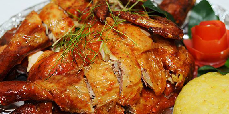 Gà ở đây là gà đồi có thịt săn chắc khi nướng lên có mùi thơm đậm đà. Một điểm khá thú vị chính là khi bạn thưởng thức tại chỗ bạn sẽ thấy thịt gà tươi ngon, nóng hổi, chỉ cần chấm với một chút muối tiêu chanh cũng rất vừa miệng. Ngoài ra bạn cũng có thể ăn kèm với một số món rau xào, luộc.