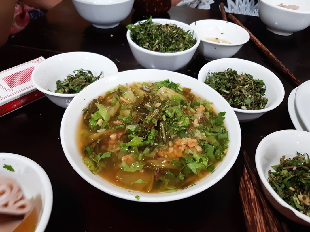 Chính vì thế vị chua của nước phở rất đặc trưng mà chỉ nơi này mới có. Mỗi lần đến Bắc Hà thưởng thức một tô phở chua thôi là đã ấm lòng rồi. Một món đặc sản Tây Bắc mà ăn rất ít khi bị ngán. Khi ăn phở chua ăn kèm thêm thịt quay, chả hay rau thơm và lạc rắc lên trên. Mỗi tô như vậy có giá từ 25.000 đồng rất rẻ vừa ngon vừa đảm bảo vệ sinh.