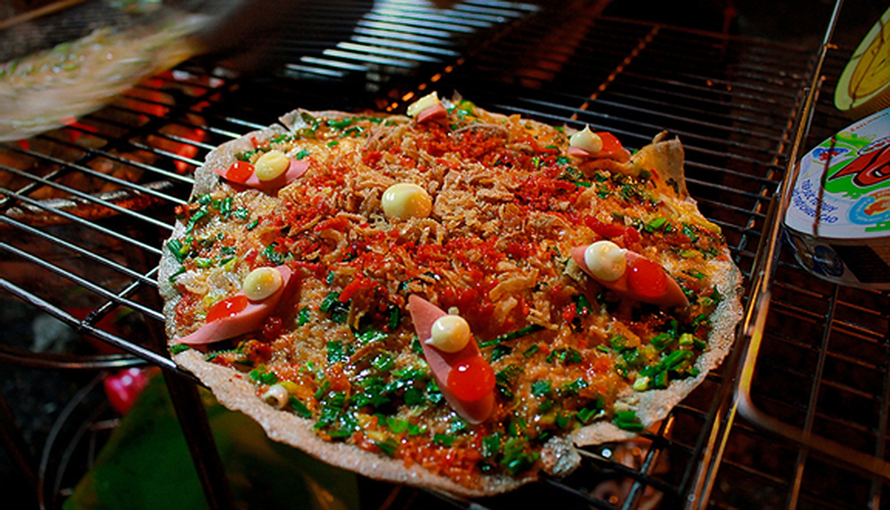 Thêm một món ăn đặc sản Tây Ninh vô cùng phổ biến với các bạn trẻ đó chính là món bánh tráng nướng. Với nguyên liệu chính gồm có bánh tráng, xúc xích, bò khô, thịt băm, tép khô, hành lá, tất cả hòa quyện với nhau tạo nên một hương vị vô cùng khó quên. Đây cũng là món ăn quen thuộc với các bạn học sinh, sinh viên vì mức giá rẻ và có thể nhanh chóng lót dạ vào bữa xế.