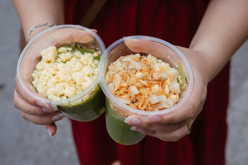 Bóc lớp vỏ ra, mùi bột gạo thơm lừng tỏa ra kích thích khứu giác. Thưởng thức món bánh, bạn sẽ cảm nhận được độ mềm dẻo của lớp bọt cùng phần nhân đậm đà. Để món ăn thêm phần thơm ngon, bạn có thể chấm chúng với một chén nước mắt có cho thêm một chút hạt tiêu Bắc.