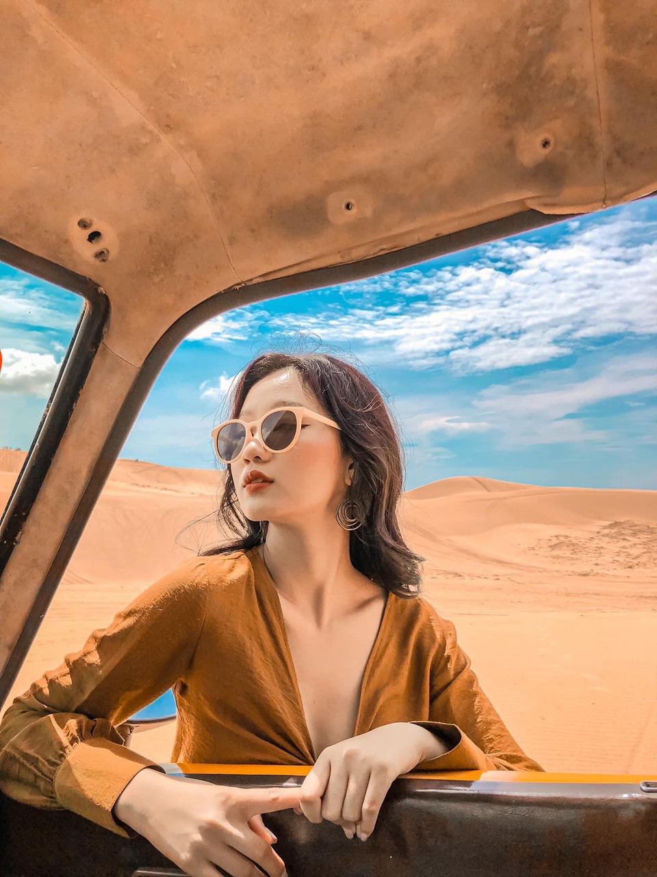 Đây cũng là một trong những hoạt động vui chơi giải trí vô cùng hấp dẫn du khách khi đến Đồi cát trắng Mũi Né, ngồi đằng sau những người lái xe, được thỏa sức bung tỏa hết mình trên một chiếc xe cực chiến, ngoài việc phóng xe vun vút đầy kích thích thì du khách còn có thể chụp cho mình những bức ảnh cực ngầu bên cạnh những chiếc xe hầm hố đấy nhé.