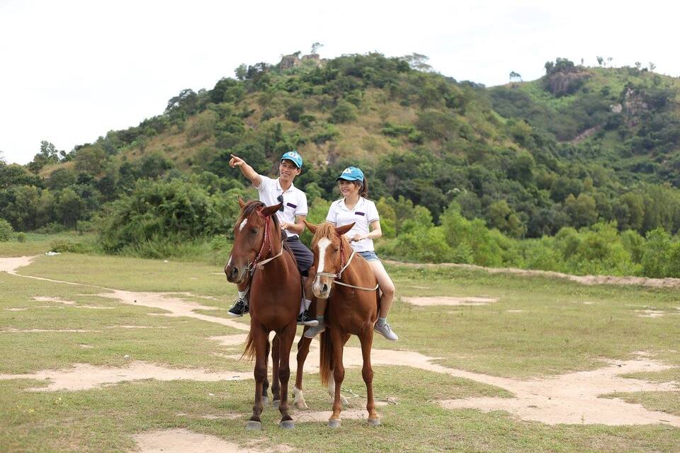 Khách tham quan đồi cừu Suối Nghệ có thể thuê gói dịch vụ cưỡi ngựa, rồi thả mình thong dong trên những cánh đồng. Không gian thoáng đãng khiến nhiều người cảm thấy mình đang ở một thảo nguyên bao la nào đó. Hay nghĩ mình là nhân vật chính đang cưỡi ngựa ngao du của một bộ phim do chính bạn sản xuất.