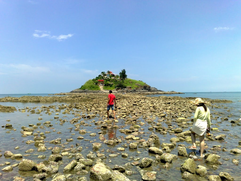Hòn nằm lẻ loi giữa biển khơi. Thủy triều lên xuống sẽ tạo điều kiện để du khách đi trên con đường đá gồ ghề và đến gần hơn với biển. Trên hòn đảo có một ngôi miếu nhỏ là miếu Bà. Sinh vật trên đảo rất hoang dã. Ngoài việc đi tàu thuyền đến Hòn Bà, du khách còn có thể chờ khi thủy triều xuống để đi bộ. Đây cũng là một trải nghiệm thú vị và còn cho thấy sự thành tâm nếu du khách muốn tới viếng thăm ngôi miếu trên đảo.