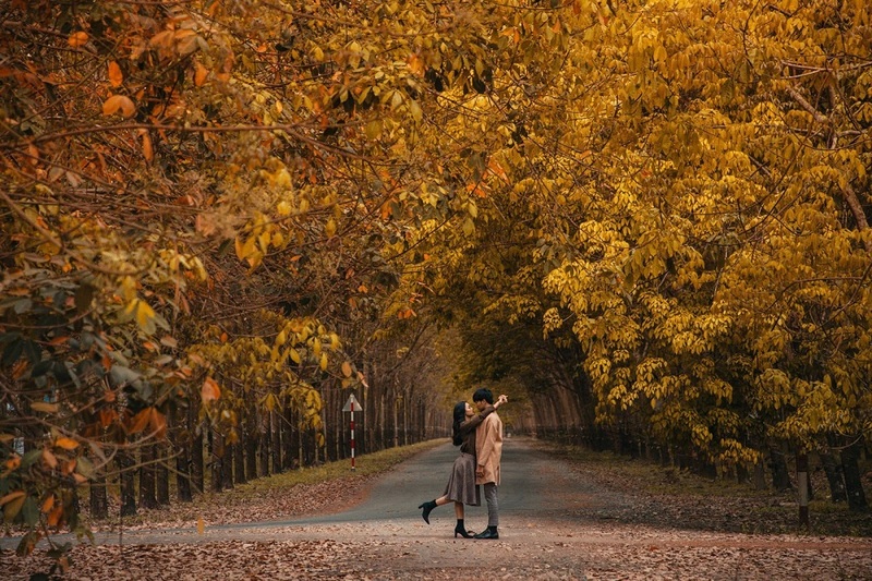 Có lẽ thời điểm đẹp nhất để thấy được sự lãng mạn của rừng cao su là vào cuối mùa thu. Khi cây cối bắt đầu thay lá, rừng cao su Bù Đăng như khoác lên mình một vẻ đẹp quyến rũ với hàng cây đầy sắc vàng.