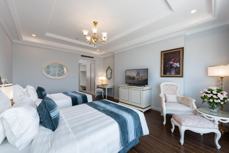 Với gam màu trắng cổ điển pha chút hiện đại đậm chất hoàng gia, phù hợp với những du khách có gu thẩm mỹ tinh tế, sang trọng. Không chỉ nổi bật bởi phong cách thiết kế nội thất tân cổ điển hài hòa với tất cả các phòng của Vinpearl Hotel Tây Ninh còn sở hữu tầm view đắt giá, nhìn toàn cảnh thành phố từ trên cao xuống, thu hút trọn vẹn cảnh đẹp của các địa danh nổi tiếng của thành phố.