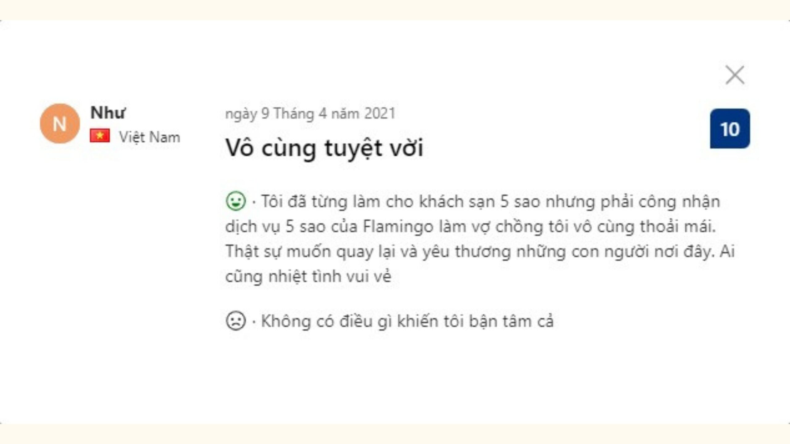 Đánh giá của chị Như cùng chồng sau kỳ nghỉ 3N2Đ tại Flamingo: