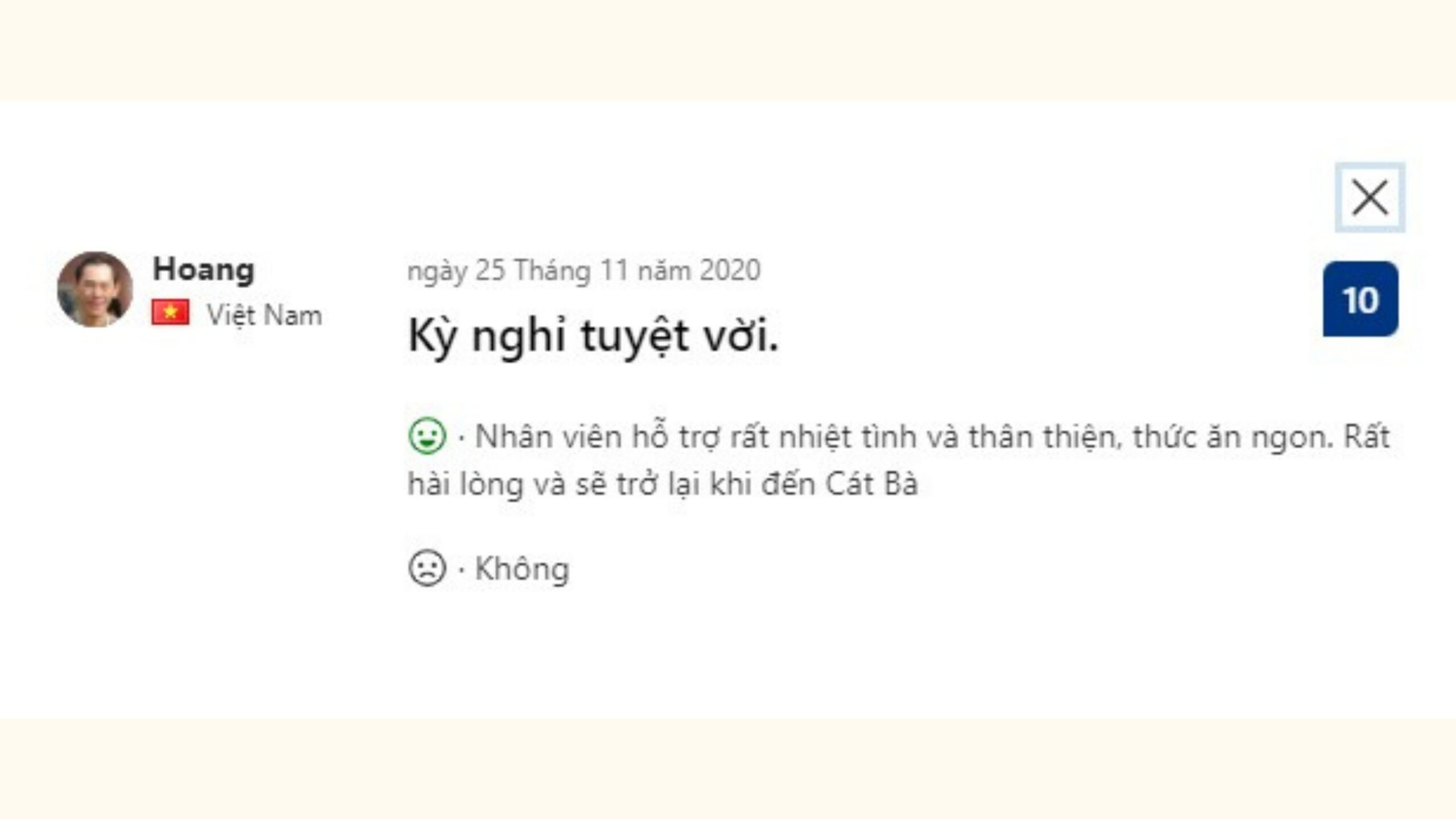 Đây là một số đánh giá của các du khách sau đi có một kỳ nghỉ tuyệt vời tại Flamingo Cát Bà: