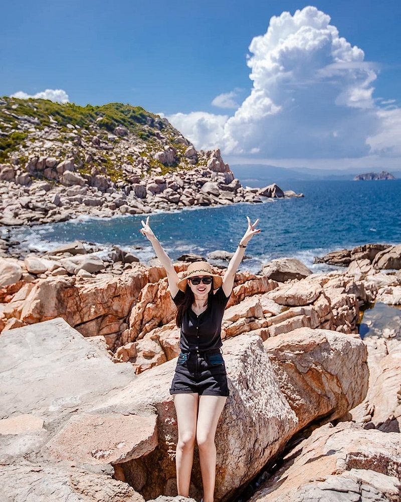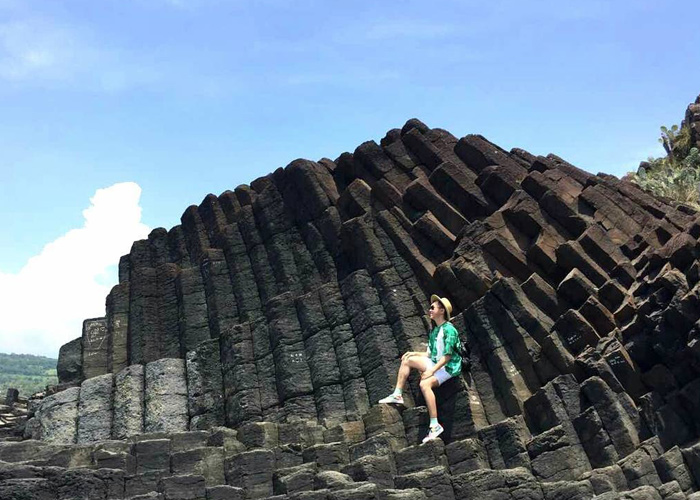 Theo thời gian, địa hình nơi đây thay đổi cùng với tác động của sóng biển nên toàn bộ khối nham thạch bị nứt thành từng mảng với nhiều hình thù khác nhau đứng san sát tạo nên cảnh quan độc đáo, những mảnh đá xếp như những bậc thang. Đi dọc theo từng hàng đá, bạn có thể ra mép biển để ngắm bình minh, lắng nghe tiếng sóng biển và tận hưởng không gian trong lành, cảm giác như đang sống giữa vùng trời thanh bình.