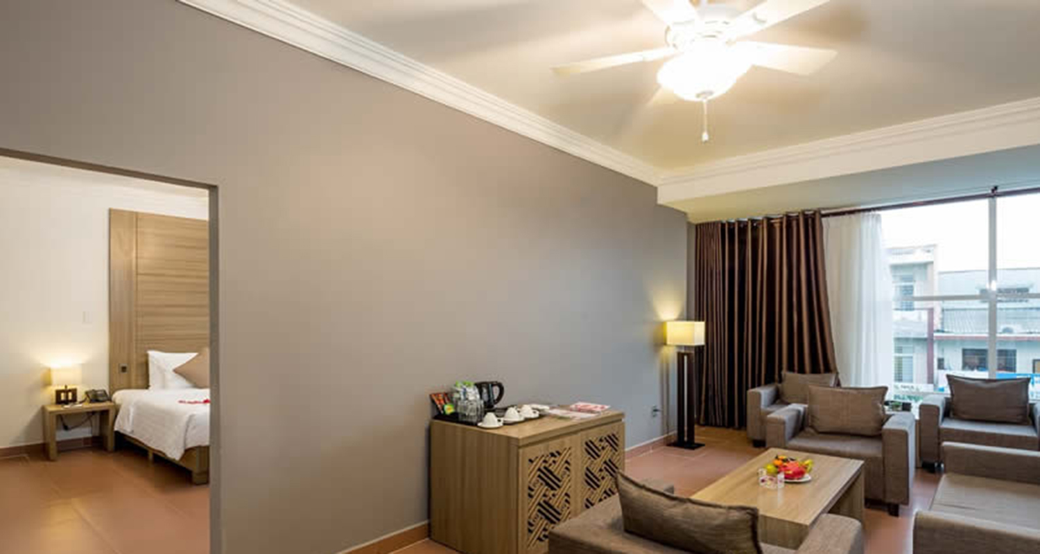 Diện tích 20m2 tại phòng Junior Studio của Grandvrio Hotel Danang tạo cảm giác nhỏ gọn, ấm ấp được tích hợp một giường đơn tại phòng – phù hợp với những chuyến công tác của các doanh nhân. Phòng còn được trang bị bàn làm việc, TV màn hình phẳng, minibar,… cùng các tiện nghi thiết yếu khác.
