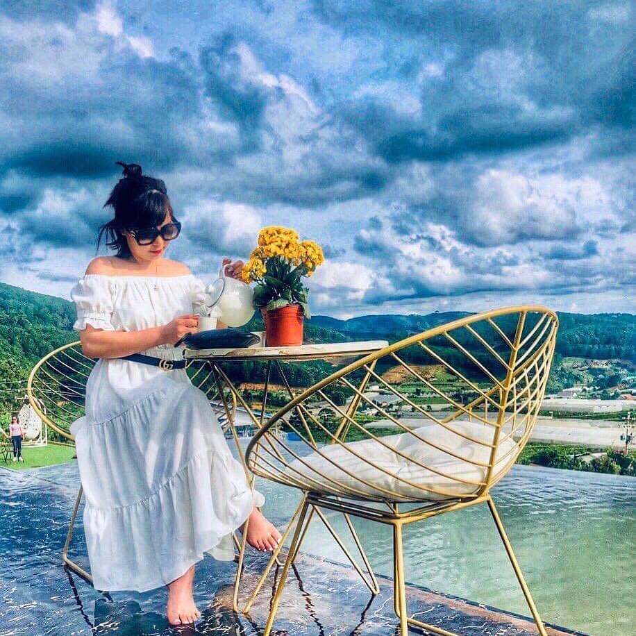 Nơi đây không đơn thuần chỉ là quán cafe mà còn có khu vực hồ bơi vô cực độc lạ, thiết kế mới có thể ngắm nhìn trọn vẹn khung cảnh thiên nhiên tuyệt đẹp của thành phố mộng mơ.