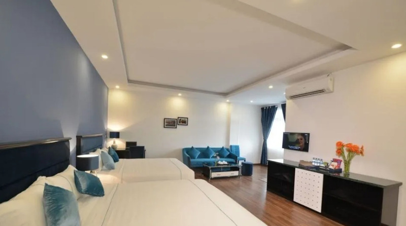 Bước vào Deluxe Double Room, bạn sẽ cảm nhận ngay được một không gian sang trọng mà nền nã với sắc màu xanh dương và trắng của những bức tường và một số vật dụng nhỏ nhắn khác. Phòng rộng 32m2 được đặt 2 chiếc giường đơn dành cho 2 người lớn, thích hợp cho nhóm bạn 2 người.
