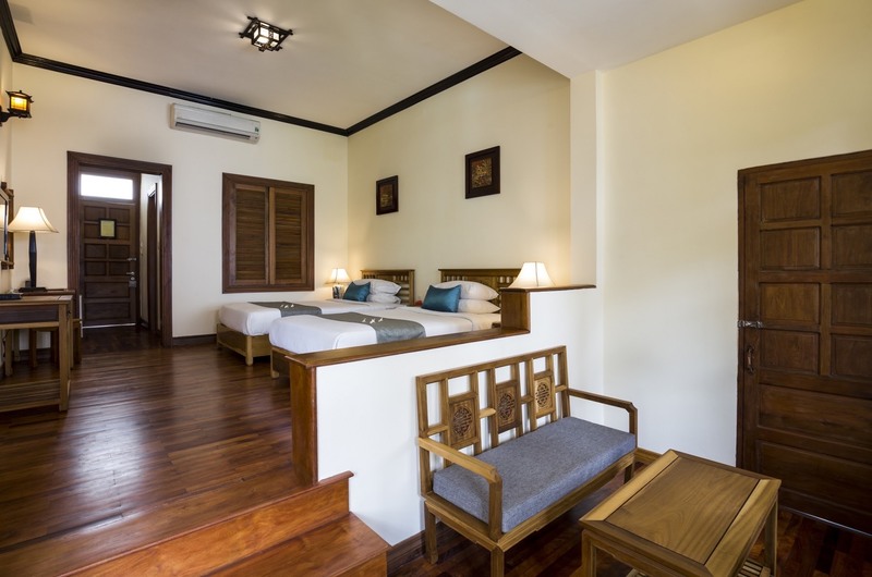 Các căn phòng Premium Deluxe rộng 62m2 với hướng vườn hoặc hồ bơi. Phòng được thiết kế mang đậm nét truyền thống đặc trưng của người dân Việt xưa với những đồ dùng như giường ngủ, kệ trang trí, bàn ghế hay những chiếc đèn và những bức tranh. Bạn sẽ được sống trong một không gian hoài cổ và rất đỗi bình dị. Phía bên ngoài cũng có khu vực tiếp khách, các bạn có thể cùng nhau thưởng thức những tách trà ấm thơm dịu trong khung cảnh thiên nhiên xanh mát của khu vườn nhỏ.