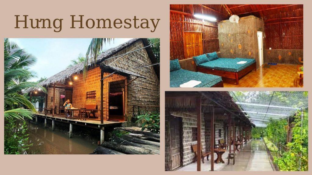 Với những dãy nhà lá đơn giản bên ven sông, được bố trí khá đơn giản được hoà mình vào không gian xanh tươi mát. Homestay thu hút khá nhiều du khách đặc biệt là khách nước ngoài muốn trải nghiệm văn hóa vùng sông nước. Các căn phòng được thiết kế đa số bằng tre nứa và những vật dụng khá thân thiện.