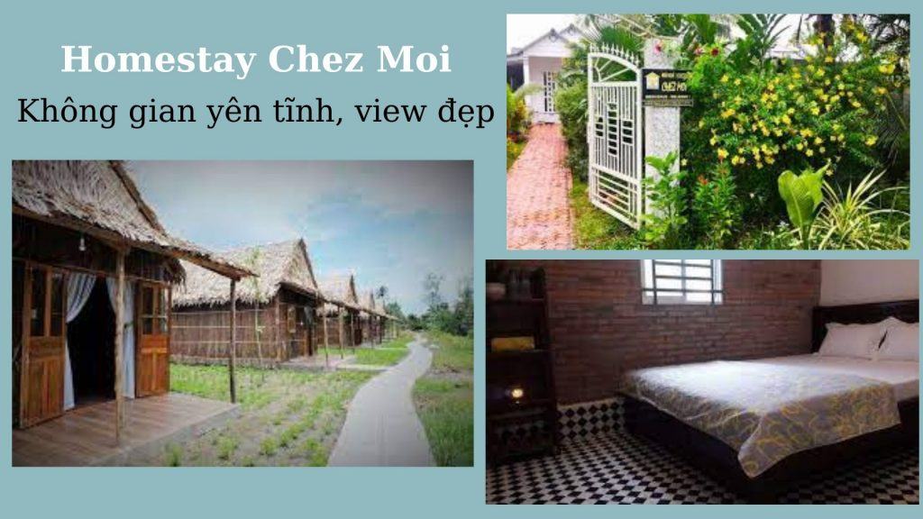 Nằm trong không gian xanh mát được trồng rất nhiều những cây xanh và hoa cỏ ngập tràn. Homestay Chez Moi Cần Thơ với những sắc thái bình yên luôn chào đón những bước chân của du khách đến nơi đây.