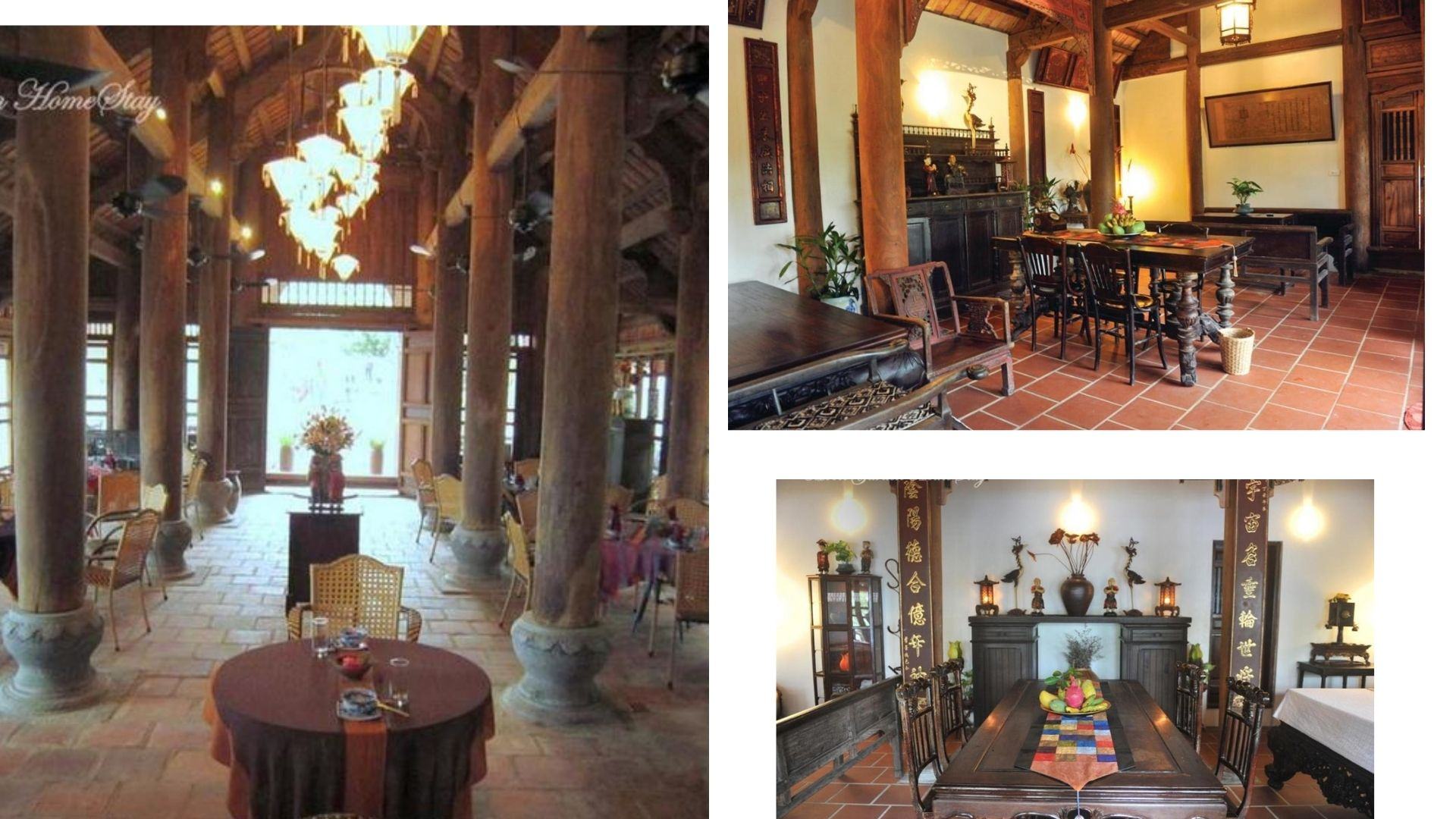 Khuôn viên homestay với đầy đủ nhà ăn rộng được trang trí với gam màu nâu tinh tế tại nên nét truyền thống, bàn ghế gỗ mang đến cho du khách những bữa ăn bình yên và trọn vẹn với menu đồ ăn với các món mang đậm chất hương vị làng quê gần gũi. Không viên sân vườn rộng với khu vườn cây ăn quả và bên này là vườn rau, du khách có thể tham gia trải nghiệm trồng và chăm sóc những luống rau xanh hya thu hoạch những mớ rau xanh sạch cũng rất thú vị. Có sân vườn riêng dành cho các bạn trẻ em vui chơi khám phá.