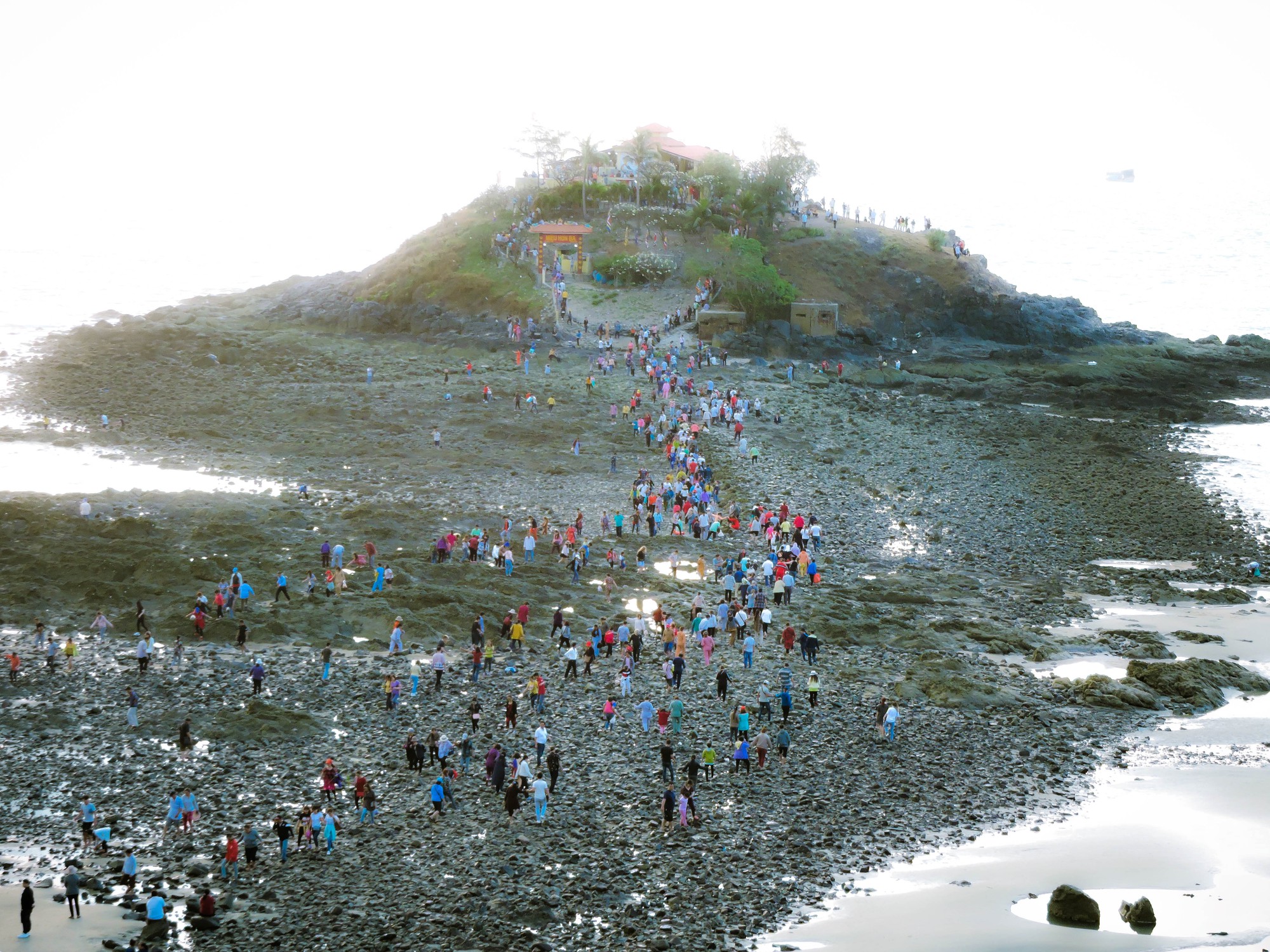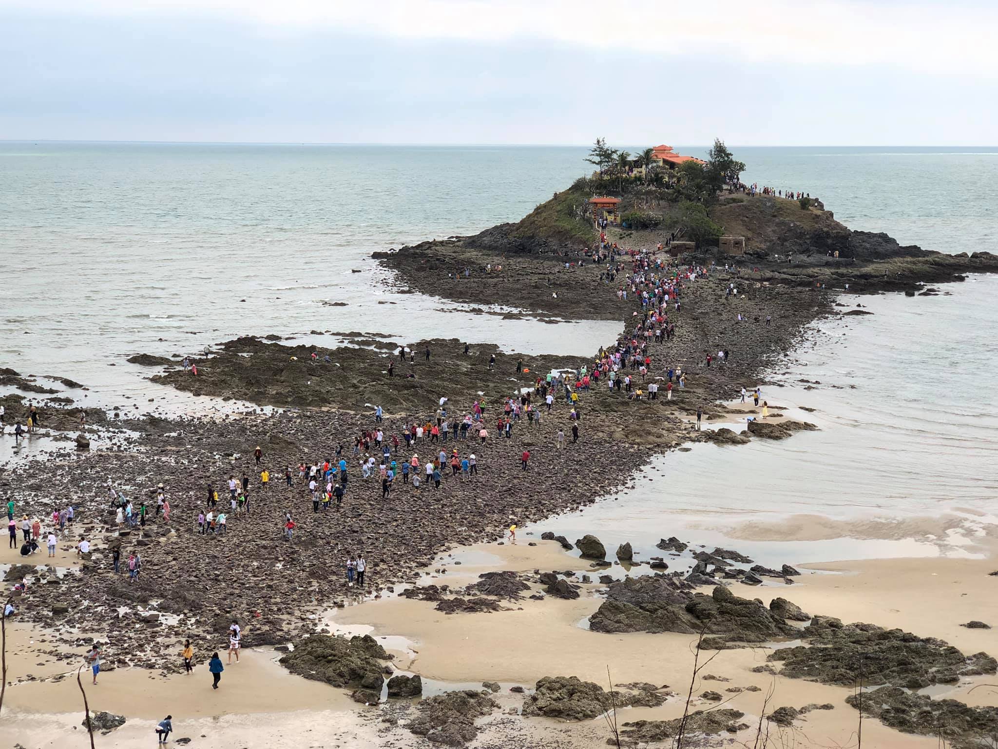 Ngoài vẻ đẹp hoang sơ, tâm linh, nơi đây còn thu hút các thực khách du lịch chính là con đường đặc biệt dẫn ra hòn đảo nhỏ này. Con đường nối từ bờ biển đến hòn đảo, là một mặt phẳng trên biển dẫn lối cho bạn.