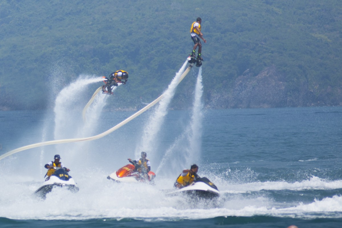 Với trò mô tô nước, bạn sẽ được trang bị áo phao đầy đủ và được hướng dẫn cẩn thận cách lái cũng như cách xử lý một số trường hợp trong quá trình lái mô tô. Khi tham gia trò flyboard, bạn sẽ được gắn chặt trên ván động cơ điều khiển cùng áp lực của nước thì bạn sẽ được bay lên khỏi mặt nước. Trò này sẽ đem đến cho bạn một cảm giác cực kỳ mới lạ đấy.