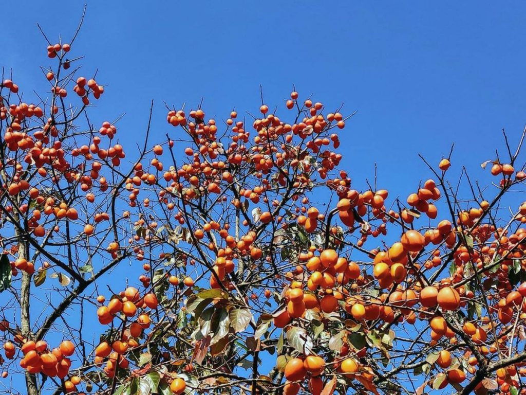 Đến lúc trong vườn hồng có thật nhiều quả cũng là lúc là cây trong vườn hồng rụng hết để lại những trái hồng căng mọng treo lơ lửng trên ngọn cây. Hồng màu cam vàng tuyệt đẹp sẽ tạo ra một khung cảnh rung động lòng người, một khung hình check in tuyệt đẹp thu hút rất nhiều du khách tới thăm thú.