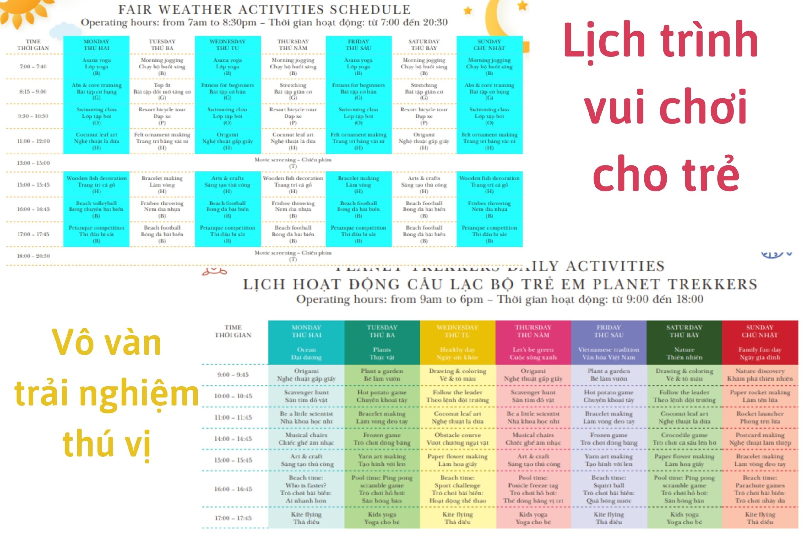 Nơi đây có rất nhiều trải nghiệm thú vị cho trẻ: Lớp Zumba dưới nước, Lớp học bơi, Rạp chiếu phim, Lớp học ảo thuật, Đi tìm kho báu,… Ngoài ra có dịch vụ giữ trẻ chuyên nghiệp nếu như bạn đột xuất có công việc với một chút phụ phí.
