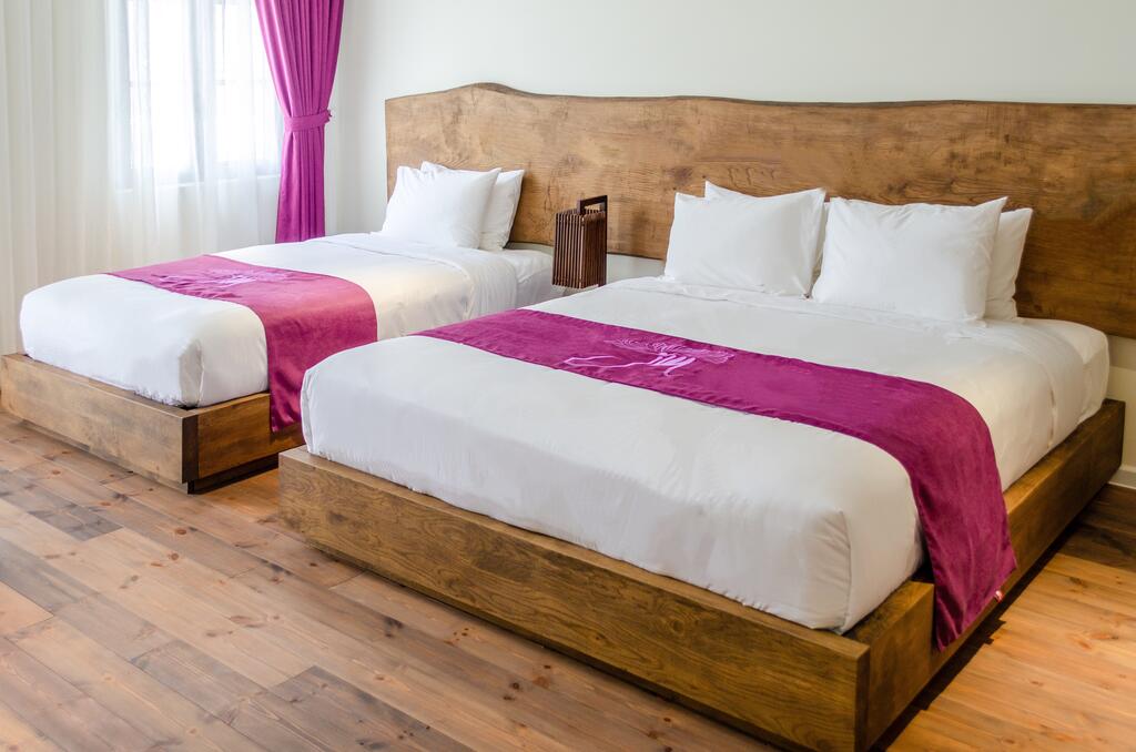 Hạng phòng Deluxe sở hữu diện tích rộng khoảng 30m2 cũng được trang bị gồm 1 giường đôi cỡ King với sức chứa tối đa dành cho 2 thành viên lưu trú, nghỉ dưỡng. Hầu hết các món đồ decor, nội thất mà hạng phòng này sở hữu đều xuất phát từ chất liệu gỗ, cực kì tự nhiên, thân thiện với môi trường kết hợp cùng tone màu sáng, nhẹ nhàng tạo nên không gian sống vừa thanh mát, dịu dàng nhưng lại không kém phần ấm cúng, lãng mạn.
