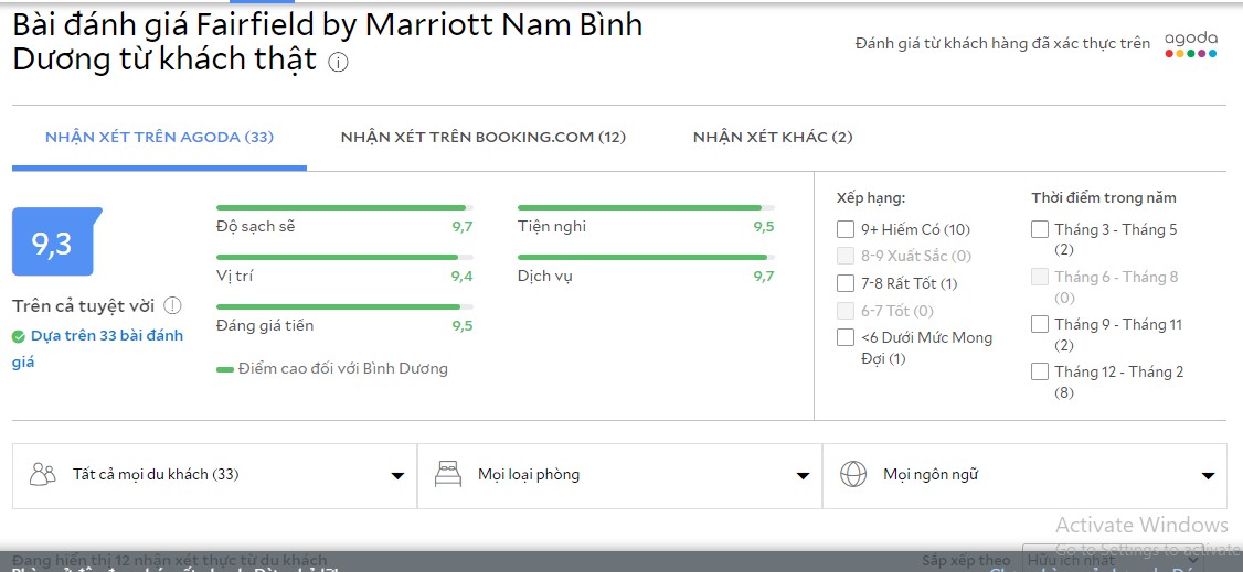 Review của khách hàng về Khách sạn Marriott Bình Dương