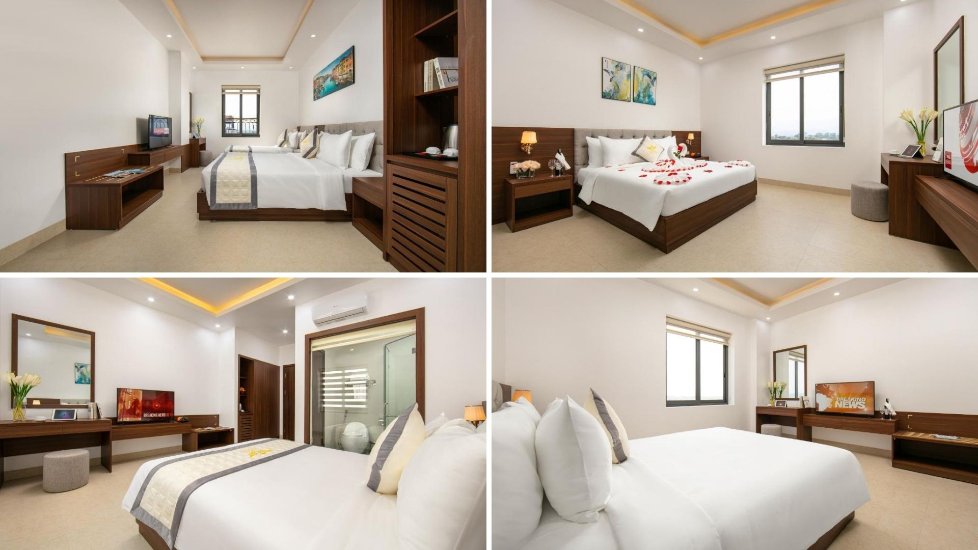 Hệ thống phòng nghỉ tại đây được thiết kế tinh tế và sang trọng, sử dụng màu trắng làm chủ đạo kết hợp với màu nâu của hệ thống nội thất trong phòng đem tới sự thanh lịch và ấm cúng ngay khi vừa bước chân vào phòng. Cùng với đó là nội thất được trang bị đầy đủ trong mỗi phòng nghỉ đem tới sự tiện nghi và thoải mái cho mỗi khách hàng.