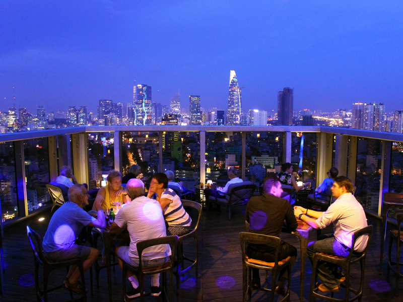 Mở ra một không gian ngoài trời thoáng mát cùng tầm nhìn hướng ra thành phố, du khách khi đến với Sky Bar có thể gọi một ly cocktail cùng vài đồ ăn nhẹ và thưởng ngoạn cảnh sắc lung linh của thành phố Sài Gòn về đêm.