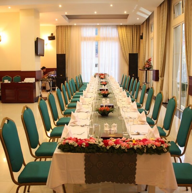 Với phòng hội nghị, khách sạn Sài Gòn Đà Lạt đem đến cho quý khách một không gian sảnh 350m2 rộng lớn được thiết kế với sân khấu, màn hình, hệ thống đèn led rực rỡ và dàn âm thanh chất lượng tốt để đáp ứng nhu cầu tổ chức những sự kiện, hội nghị lớn của khách hàng.