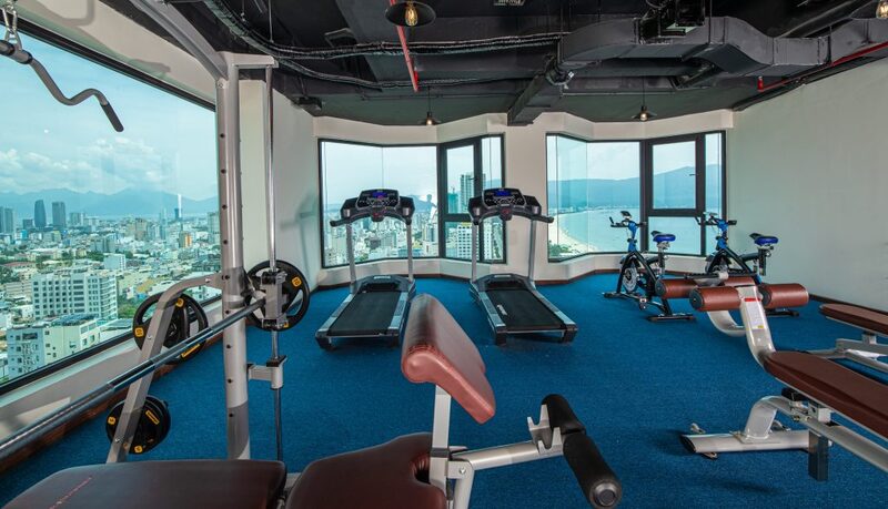 Bên cạnh các tiện ích kể trên, bạn có thể trải nghiệm không gian phòng gym đẳng cấp 4 sao với view tập hướng thành phố độc đáo. Phòng tập tại khách sạn Sala Đà Nẵng được thiết kế thông thoáng và rộng rãi, các máy móc và thiết bị dụng cụ tập luyện cũng đều được trang bị đầy đủ, chu đáo và chất lượng nhất.