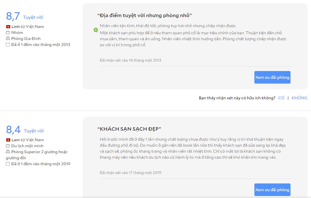Những review của khách hàng về khách sạn Thanh Bình 1 Hội An
